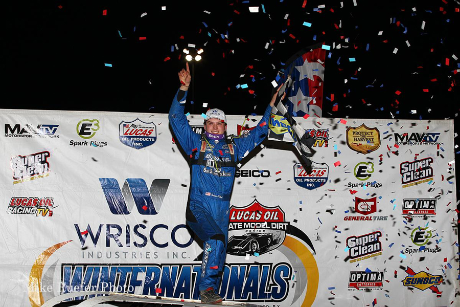 Hudson O'Neal in victory lane at East Bay (FL) Raceway Park in February 2019 - Mike Ruefer Photo