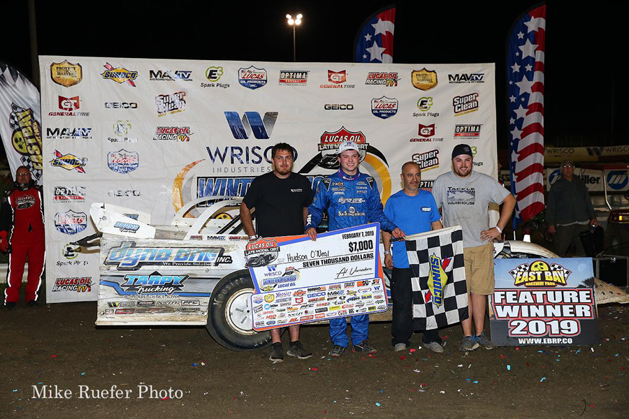 Hudson O'Neal in victory lane at East Bay (FL) Raceway Park in February 2019 -