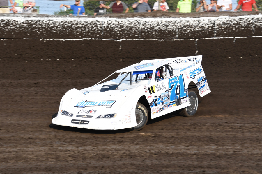 Hudson O'Neal mashes the gas during the 'Prairie Dirt Classic' at Fairbury (IL) Speedway in July 2019 - Todd Healy Photo