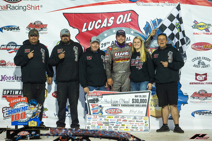 Hudson O'Neal bags $30,000 in the 'Show-Me 100' at Lucas Oil (MO) Speedway in May 2021 -