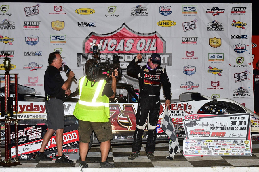 Hudson O'Neal bags $40,000 in the 'Topless 100' at Batesville (AR) Motor Speedway in August 2021 -